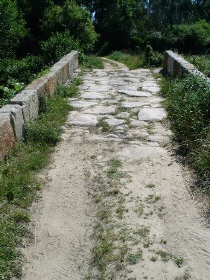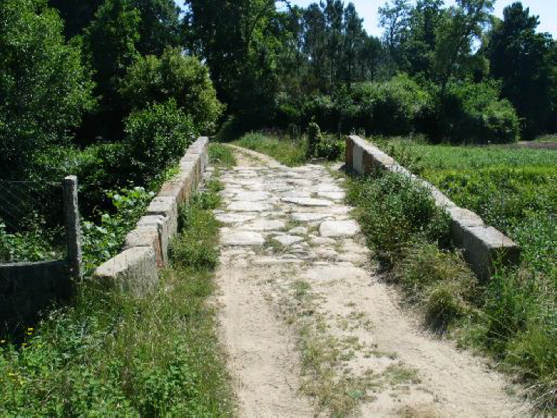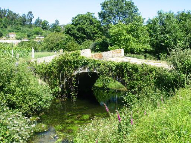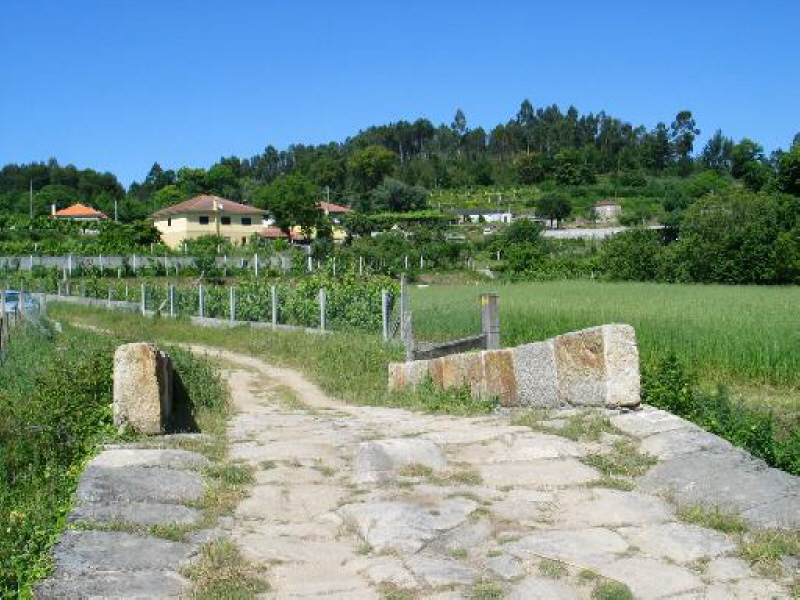 Diese kleine einbogige Brücke sowie die Reste der Straße nahe der Brücke gehörten zur viae publicae (Staatsstraße) von Bracara Augusta (Braga) über Limia (Ponte de Lima), Tudae (Tui) und Lucus (Lugo) nach Asturica Augusta (Astorga). Von dieser Straße finden sich auch noch Überreste in Form der Brücken in Ponte de Lima, bei Rubiães sowie in São Pedro da Torre. |