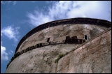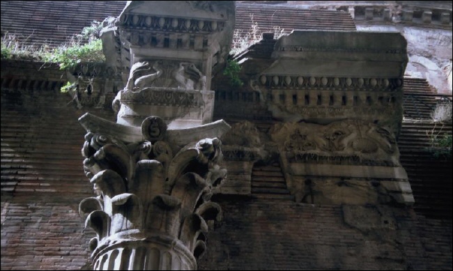 Auf der Rückseite des Rundbau befand sich die Neptuns-Basilika. Davon zeugt noch der teilweise erhaltene Fries mit den gut zu sehenden Dreizacken und Delphinen. |