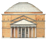 Der erste zwischen 27 und 25 v.Chr. errichtete Bau geht auf Agrippa (den Schwiegersohn des Augustus) zurück. Das Pantheon des Agrippa scheint ein rechteckiger Tempel gewesen zu sein. Von der zweiten Restaurierung unter Domitian nach dem Brand von 80 n.Chr. ist nichts bekannt. Das heute sichtbare Pantheon enstand in den ersten Jahren der Herrschaft des Kaiser Hadrian. Eine weitere Restaurierung gab es dann nochmal 202 n.Chr. Im Jahr 608 schenkte der byzantinische Kaiser Phokas dem Papst Bonifaz III. das Pantheon, 609 wurde es dann in die Kirche S. Maria ad Martyres umgewandelt. Diesem Umstand verdanken wir den heutigen guten Erhaltungszustand.